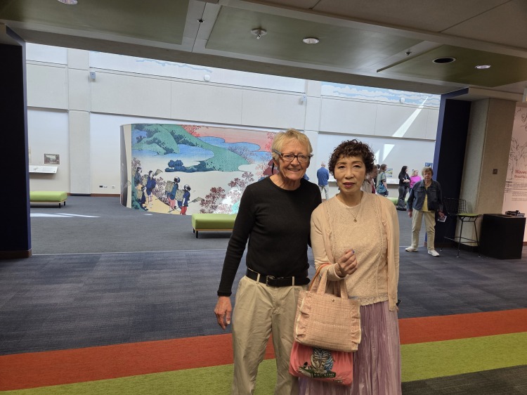 今年は江戸時代において、日本人の浮世絵師として有名な北斎について、調べて、コピーではありますが、作品を展示するというので、息子クリスがチケットを買ってくれました。私たちは見学に行ってきました。とても広い大学のイベント会場には北斎の浮世絵作品コピーが展示され、興味深く見学しました。