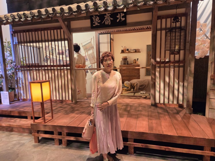 浮世絵以外には、大学生たちが作り上げた北斎のその当時の生活模様、江戸時代の様子を想像して作った建物、大道具の家の作品の展示は、本物らしくみえて、素晴らしかったです。