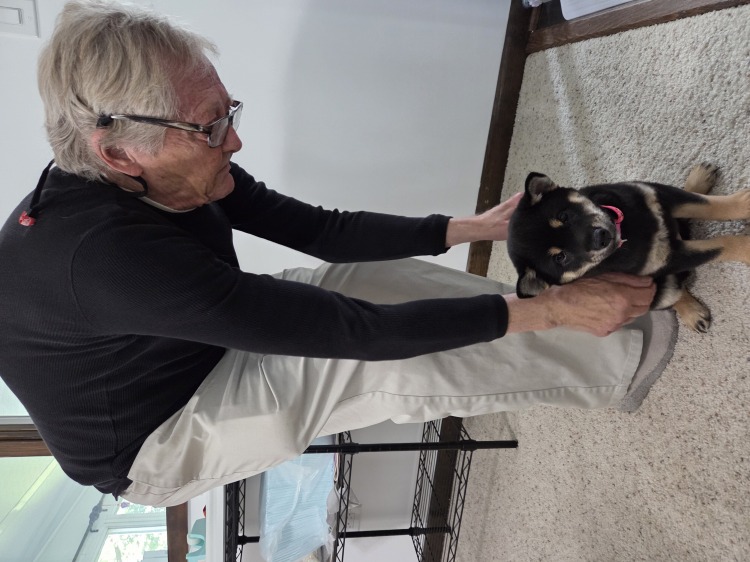2週間経ったばかりの可愛いわんちゃんに夫リチャードも興奮して、抱っこしたり、遊んでました。